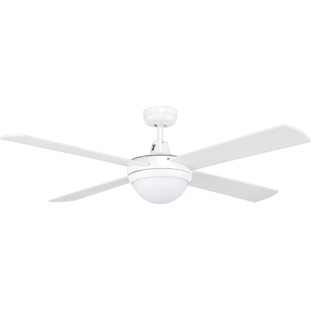 A reliable, contemporary styled ceiling fan with four quiet plywood, timber blades combined with a powerful 50W motor. Diecast aluminium body and canopy construction, with 4 painted plywood blades 3 speed wall control with switch included. Reversible All-Seasons technology for use all year round 85% pre-assembled out of the box for fast installation. It boasts a Powerful 50W AC motor. The Light kit uses 2 x 40W max. B22 globe (globes not included). The Tempest II uses our Quick Connect Plug System to reduce installation time. Even faster installation is achieved with our new and improved hassle-free design. It is suitable for indoor locations around the home. It is also compatible with Brilliant remotes and BrilliantSmart fan controllers.