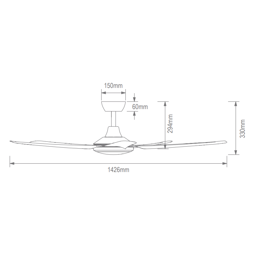 The HOVER DC Ceiling Fan Series is a modern and slimline 5 Blade ceiling fan design that offers a simplistic look which will suit most decors. Available in 56” 1420mm blade length with the choice of no light or 18W LED CCT Switchable light. Choose from 3000K Warm White, 4000K Neutral White or 6000K White via the remote control. The remote control also features a 9-speed function and fan timer and reverse Winter/Summer mode is included. Light models are fully dimmable via remote control. Constructed from ABS Polymer, the HOVER Series is lightweight, quiet and offers superior airflow. Super energy efficient DC Motor, drawing only 26W at high speed. Smart fan adaptable with a smart chip accessory, that is compatible with Google Home and Alexa. Other optional accessories include extension rods, DC Bluetooth Wall Controller as well a Ceiling Pitch Accessory for raked ceiling installations. Suitable for Indoor and Outdoor Undercover use. Backed by a 6-Year Warranty*.