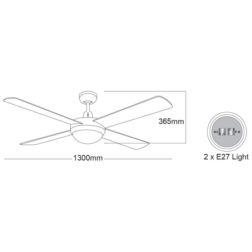 The Lifestyle E27 comes with a twin E27 light kit designed to take energy saving compact fluorescent lamps (CFL) or E27 LED globes. The fan comes in simplistic White finish, a modern Brushed Aluminium finish, or a stylish Matt Black finish.