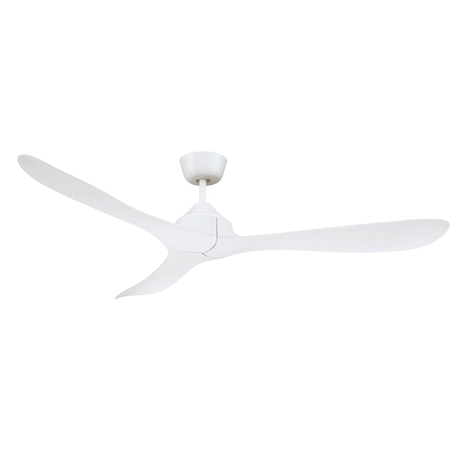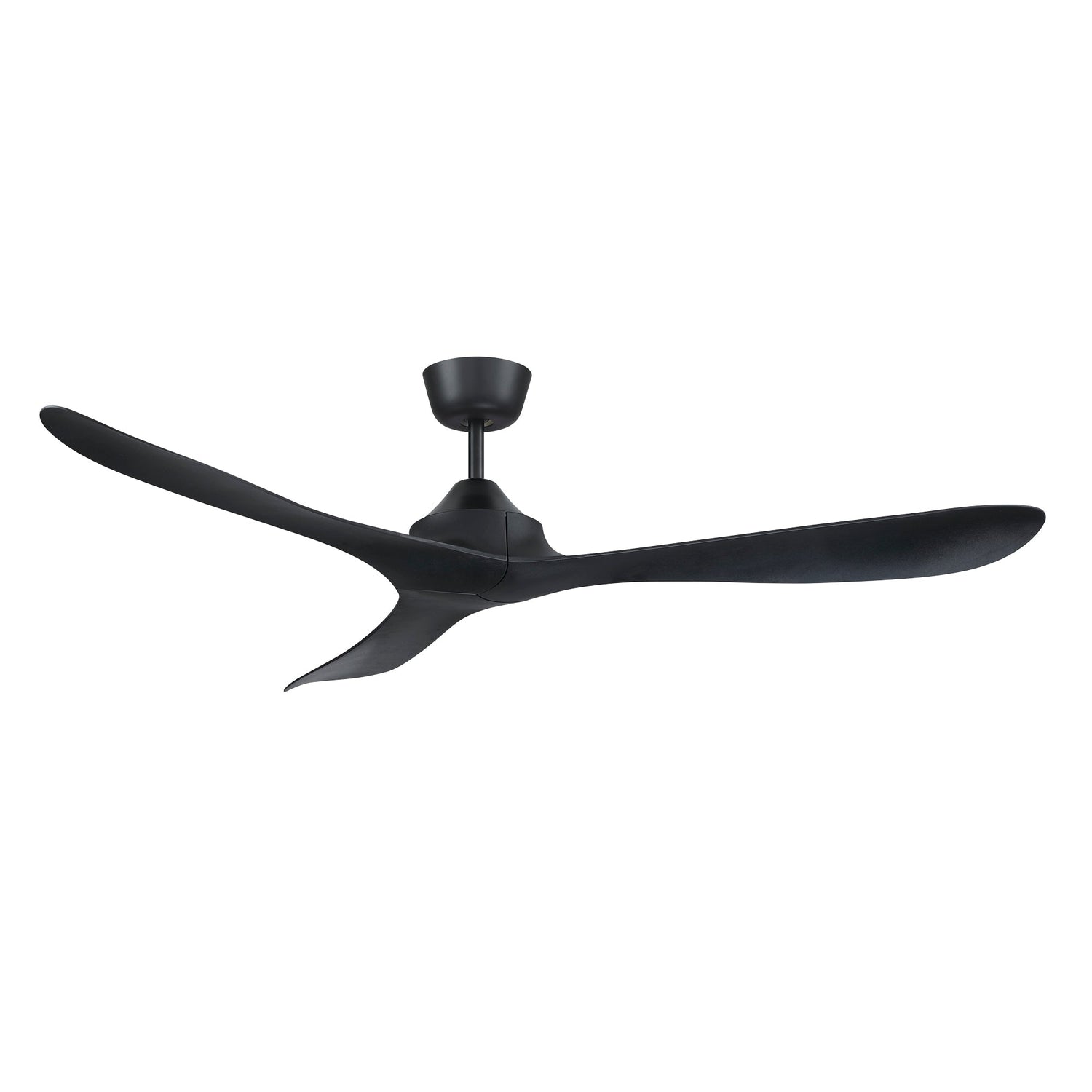Streamline design ceiling fan with superior air circulation performance and corrosion resistant parts for indoor/covered outdoor use.