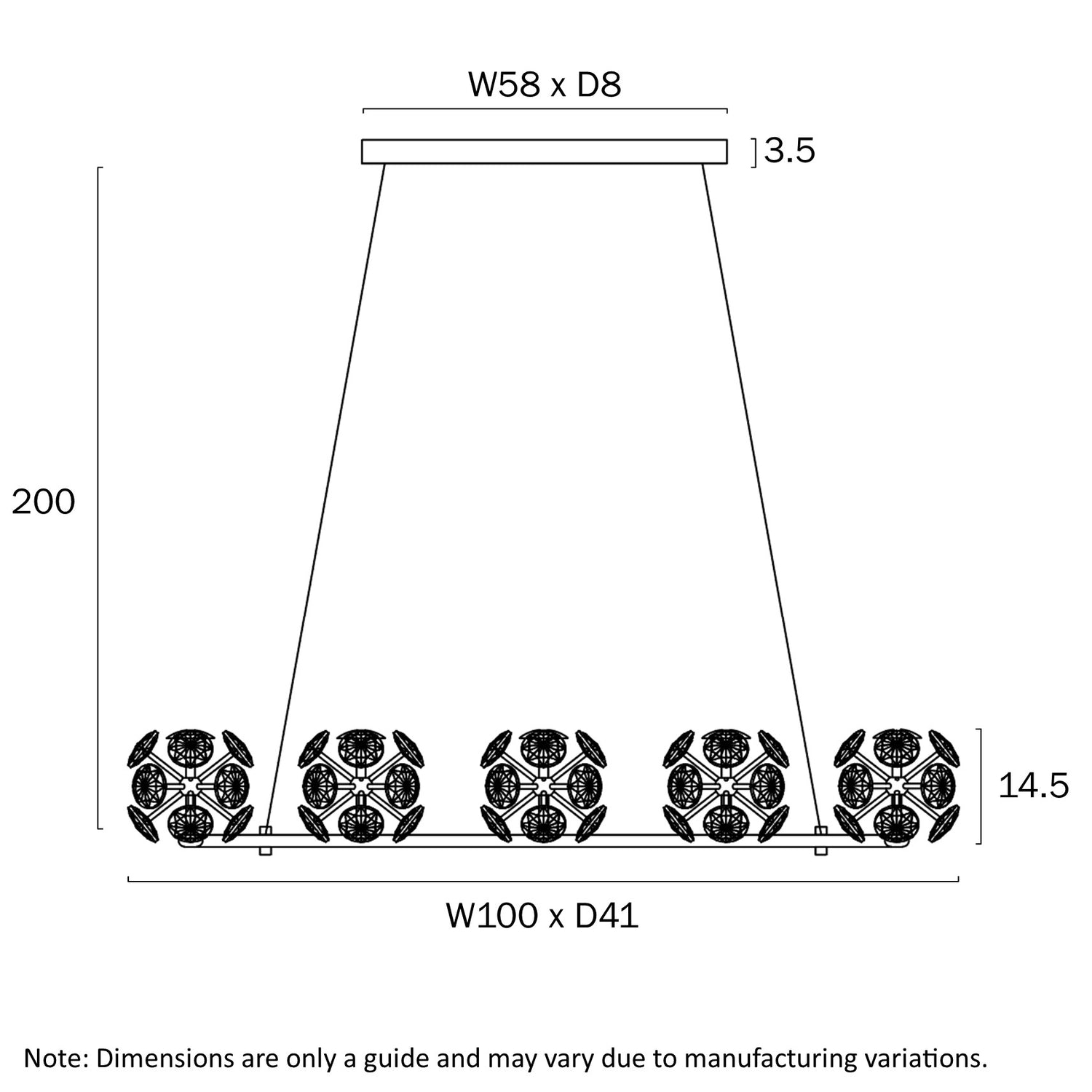 The Catania pendant is an exquisite lighting fixture crafted from iron and adorned with crystal accents. Featuring integrated LED technology with a warm 3000K colour temperature, it is available in configurations of 8 or 18 lights. The pendant is elegantly finished in antique gold, adding a touch of sophistication to any space.