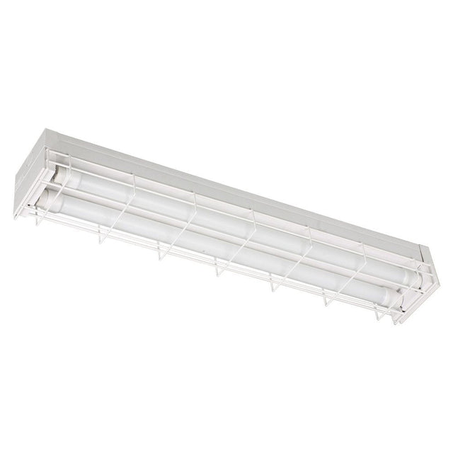 Conventional designed bare LED battens with wire guard protection, ideal for commercial interior spaces