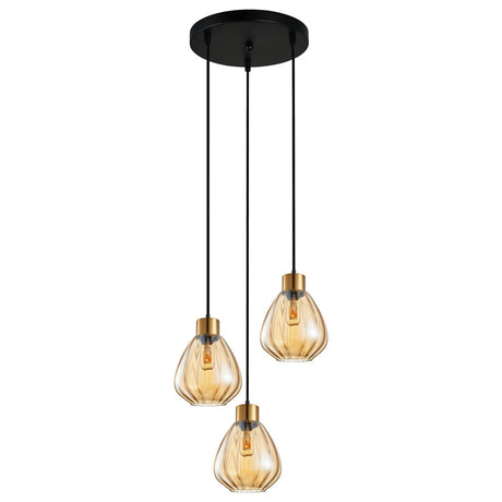 CLA TULIP Interior 3 Light Round Wine Glass Ribbed Pendant