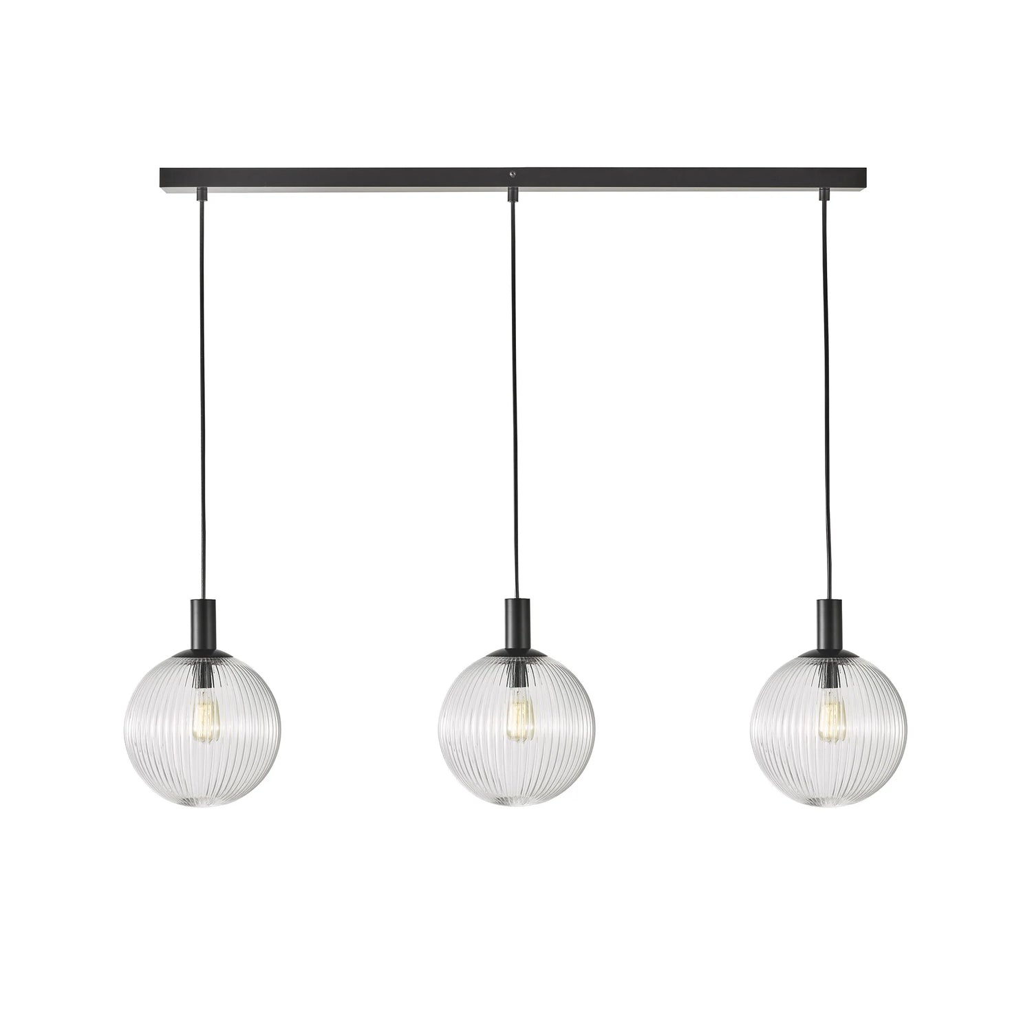 The Legarno is a mixture of classic and timeless design, part of what makes this fitting so attractive is the ribbed glass contrasted by the simple styling of the black metalware. This 3 light arrangement is perfect for use over a kitchen island or dining table. Suspension length can be reduced by the installing electrician.