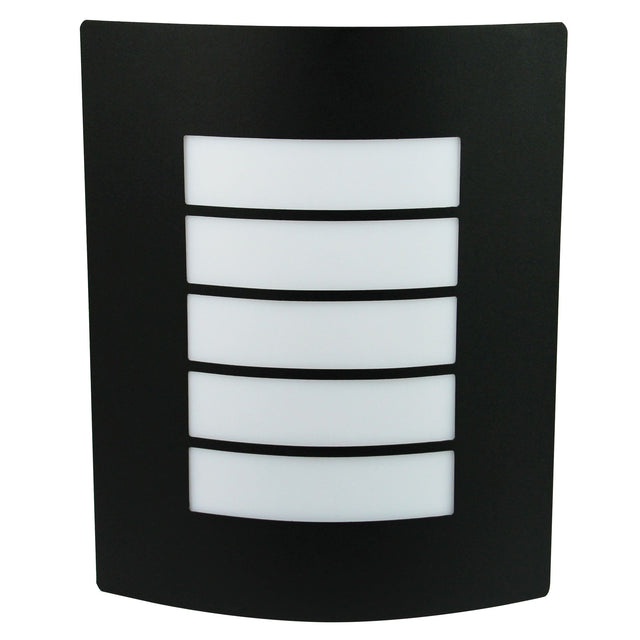 CHEETA outdoor wall light emits a wash of light from around the sides and through the slats at the front. Double insulated, opal acrylic exterior (IP44) wall light with a textured black powder coated aluminium face plate. Perfect for use with an LED globe.