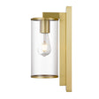 The Perova outdoor wall lamp is inspired by the best of minimalist design and is comfortable in any decor. This fixture is framed in solid brass with a tall cylinder. Add a vintage filament style bulb for an industrial look. It features a clear glass cylinder shade to add a rounded touch to this sleek mid-century inspired fixture. Available in 2 sizes as either natural brass or Black.