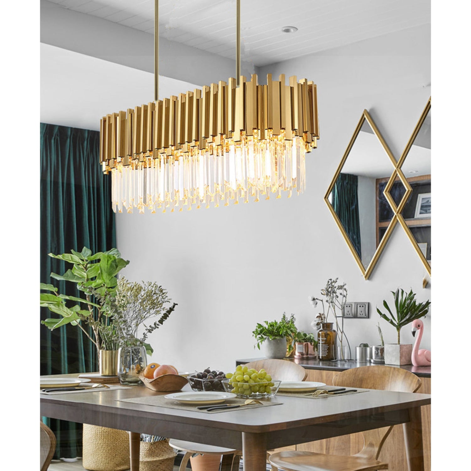 80cm Long Satin Brass Chandelier