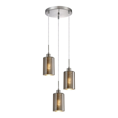 CLA ESPEJO1 Interior Iron & Chrome Glass with Line Effect Oblong Pendant Lights