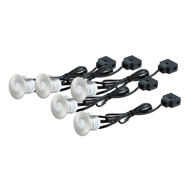 Set of 5 Round Stainless Steel LED Deck Lights by VM Lighting - White LED is backordered and will ship as soon as it is back in stock.