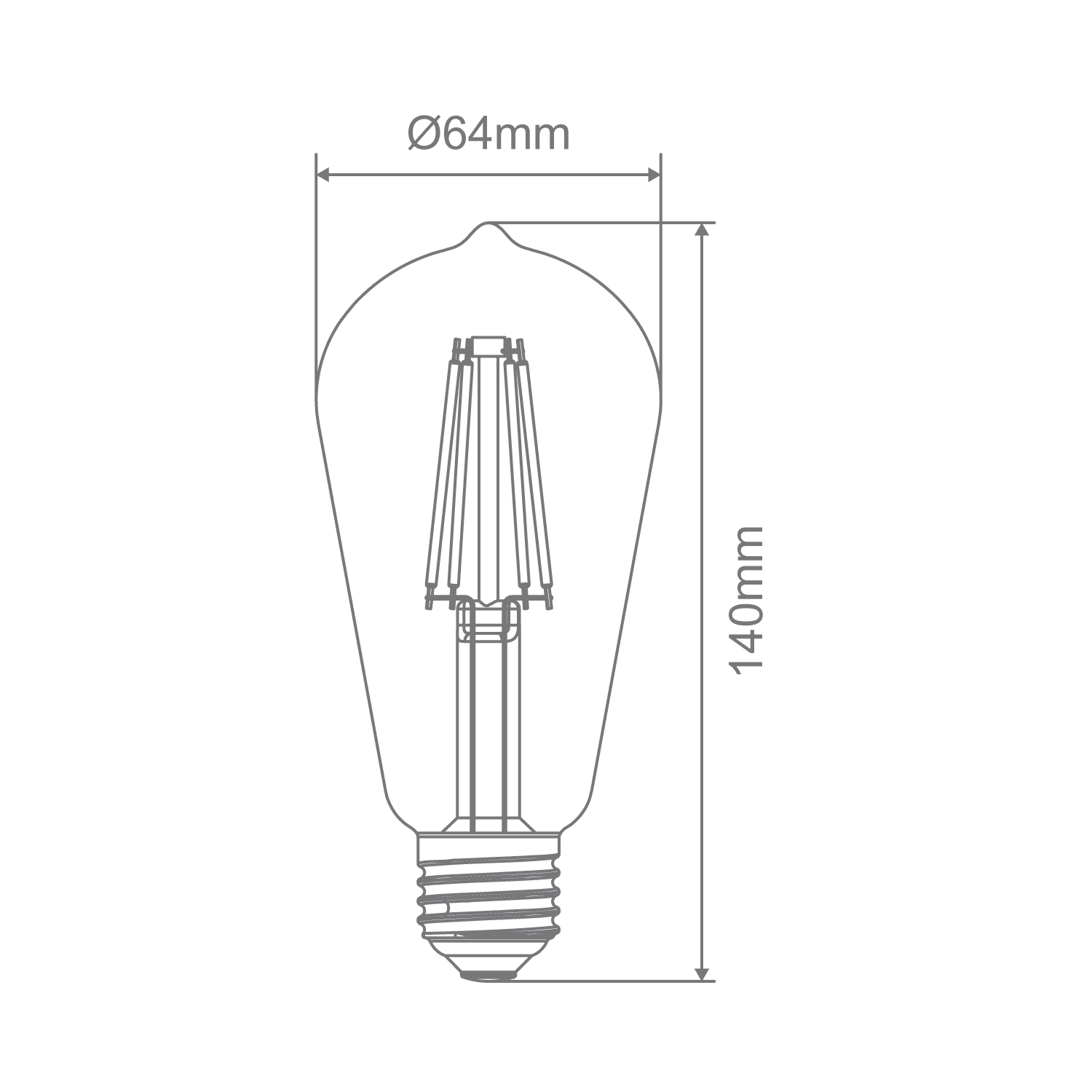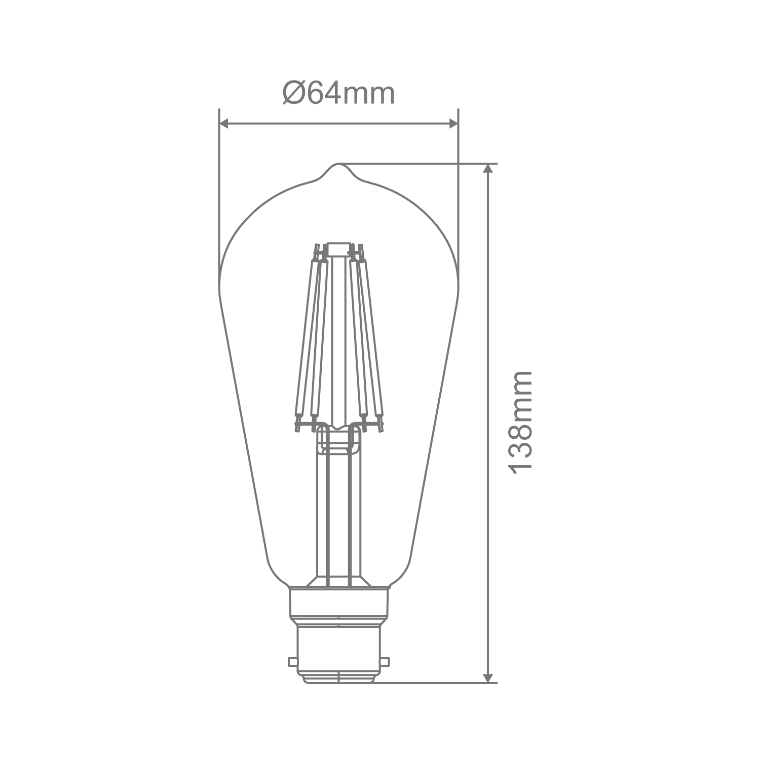 7.2W pear style classic vintage globe, ST64 (Pear) shape. Available in ES (E27) and BC (B22) base options. Available in 2700K (Warm white) and 6500K (Daylight) LED colour temperature option. Clear glass. Fully dimmable with suitable dimmers.