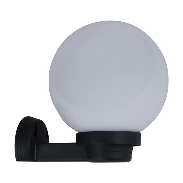 Polycarbonate wall light with arm and 200mm sphere. Ideal for coastal areas.