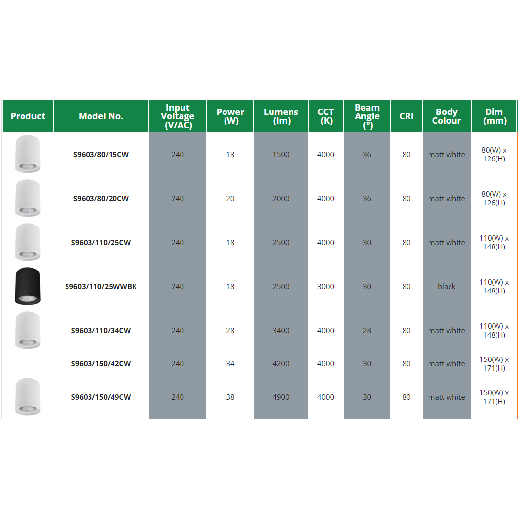 SAL COLUMN S9603 Surface Mount LED Downlight