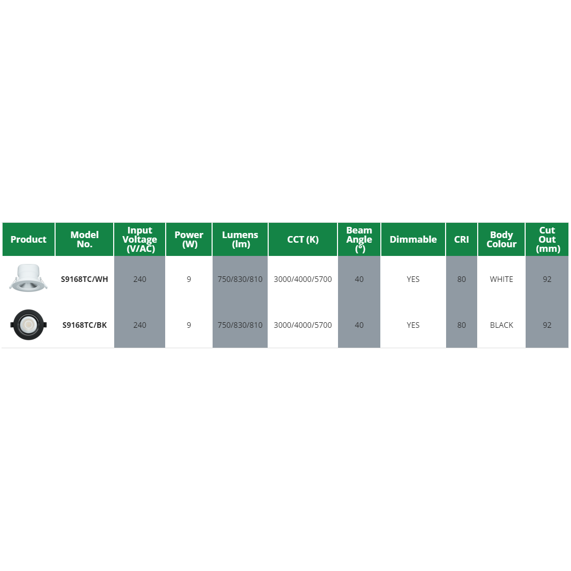 SAL COOLUM PLUS S9168TC - 9W Dimmable LED Downlight