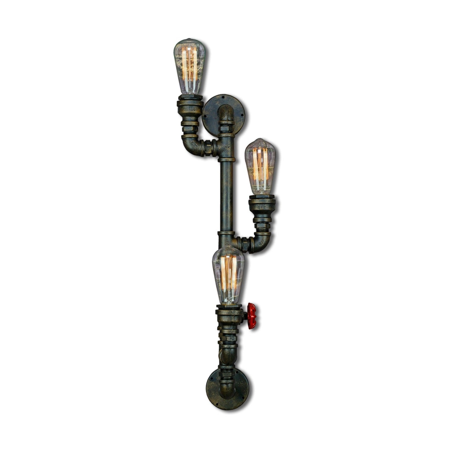 Pipe Industrial Steampunk 3 Lights Wall Light by VM Lighting