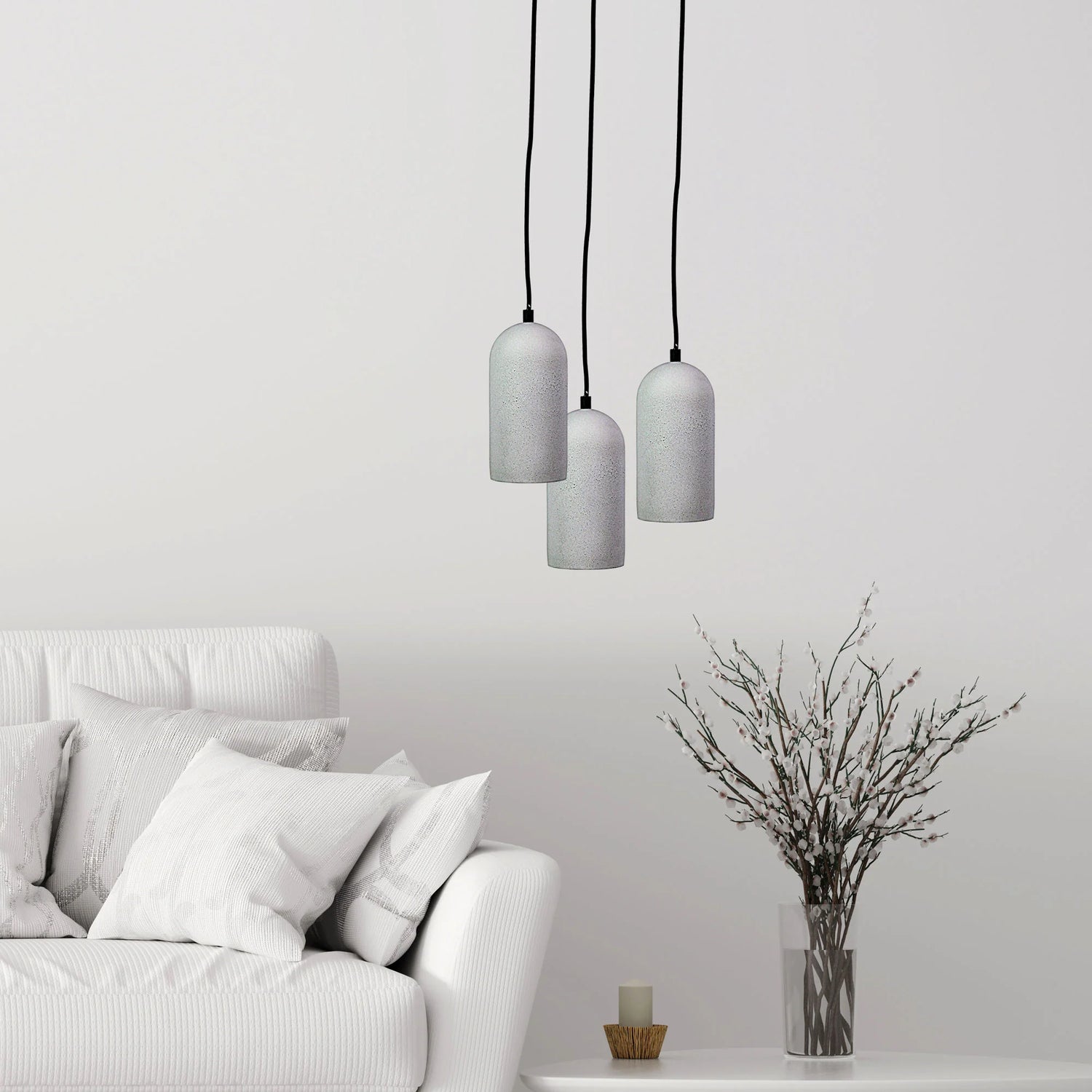 The raw concrete finish of the CIMO pendants will sit perfectly within your modern or retro home. Part of our urban lighting range, the CIMO is an ideal choice for over-bench lighting. Suspension cord is black cloth.
