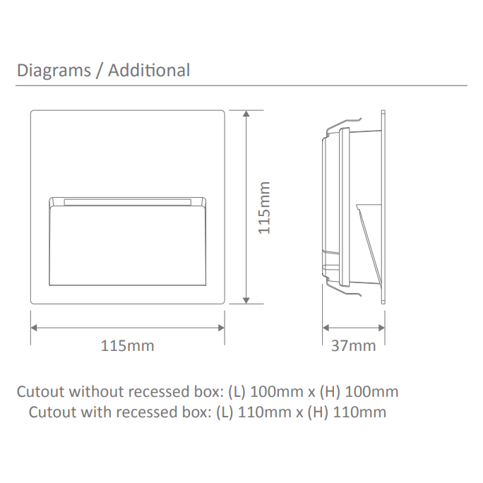 Cutout with recessed box: (L) 110mm x (W) 110mm