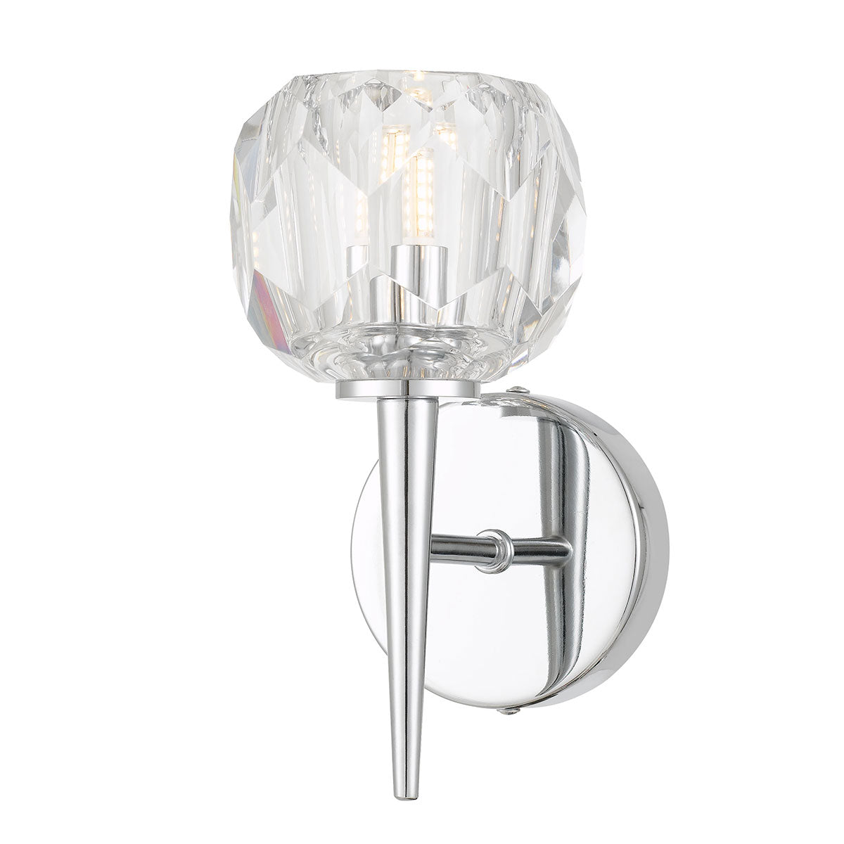 Spheres of prismatic cut crystal bring contemporary glamour to the Zaha collection. Each sphere is illuminated with a LED twinkle globe accentuating the cut surface. The family includes a 1 light pendant, 1 light wall lamp, 2 light table lamp, 4 light bar pendant, 5 light round pendant and 10 light round pendant. Available in Antique gold or chrome.