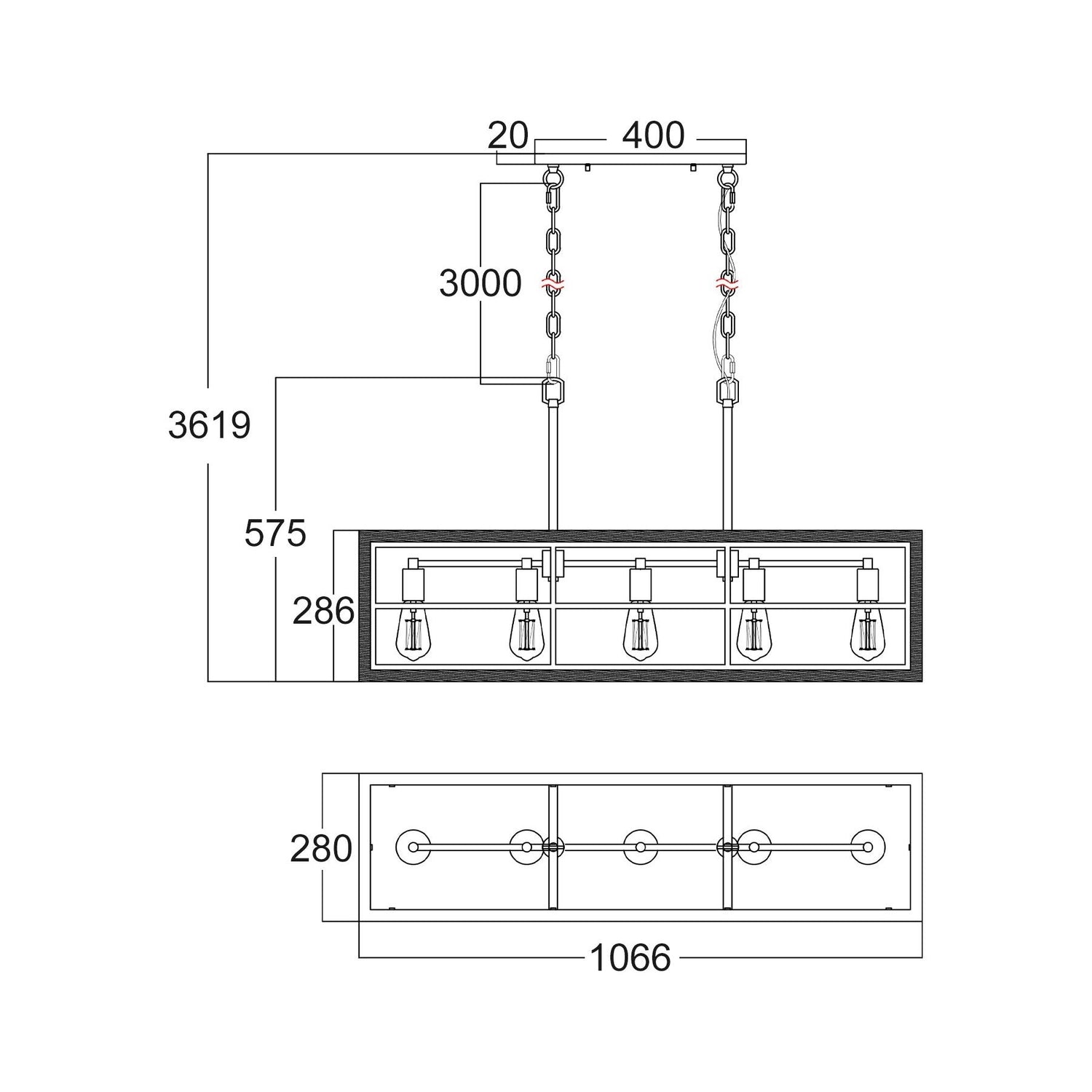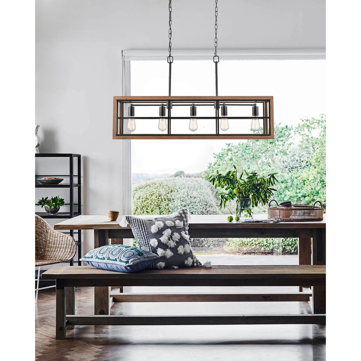 | BANQUET1 | PENDANT ES 5 x 60W Rectangular Frame Medium Oak Wood With Oil Rubbed Bronze Hardware | Max.60 | - | 575 | 1066 | 280 |