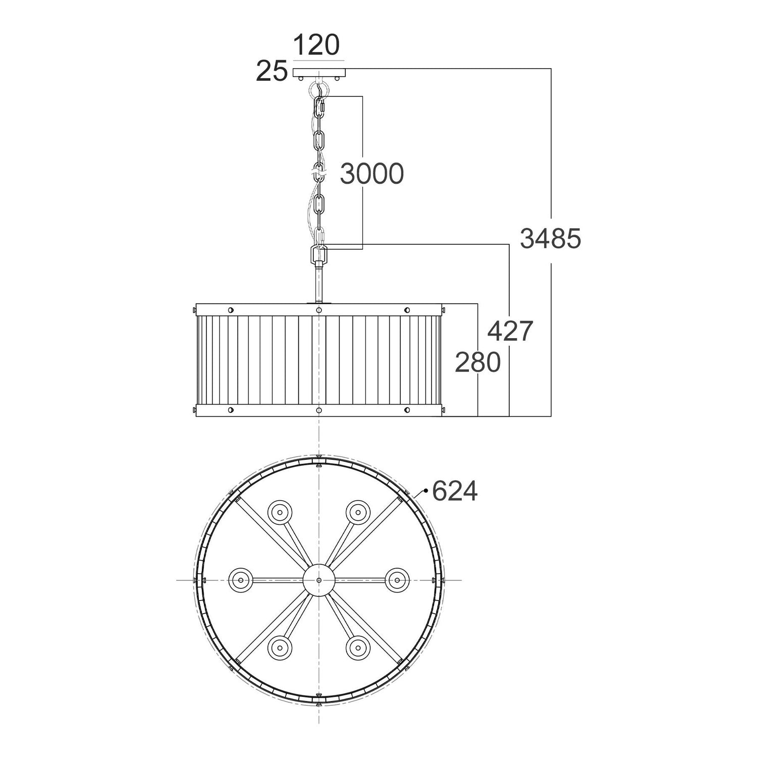 | BARRIQUE2 | PENDANT ES 6 x 60W LGE Drum Natural Wood With Oil Rubbed Bronze Hardware | Max.60 | - | 427 | Ø624 |