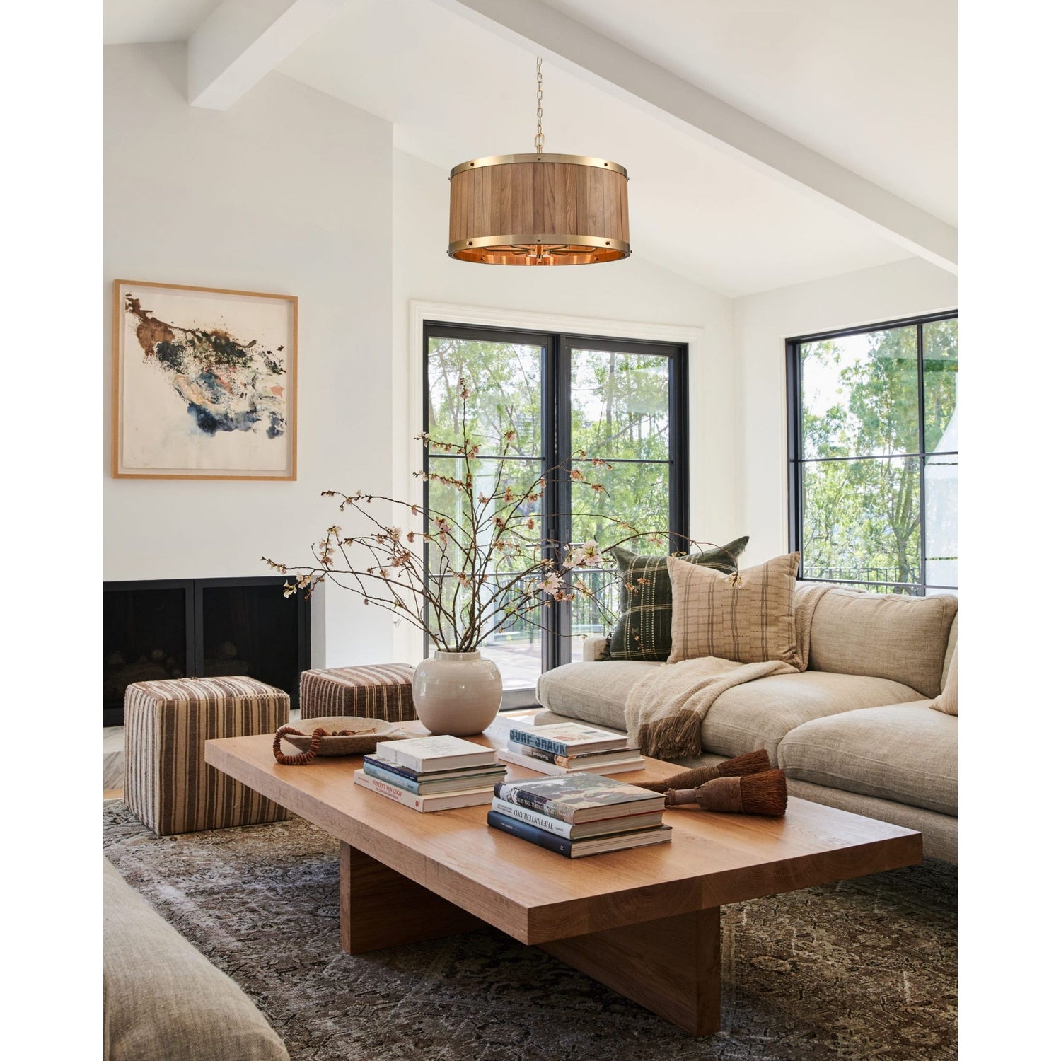 CLA BARRIQUE Interior Drum Wood Pendant Lights - Rubbed Bronze is backordered and will ship as soon as it is back in stock.