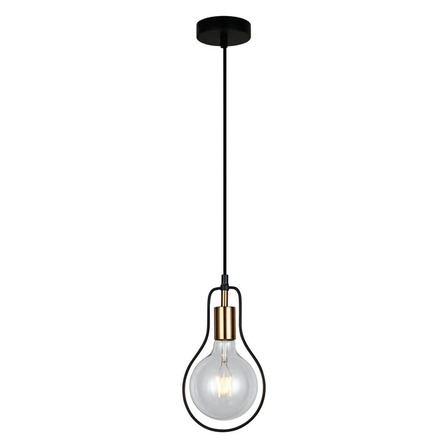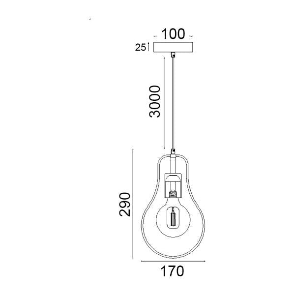 CONTOUR1 PENDANT ES 72W BLK Wire Pear with Antique Brass Highlight L290mm W170mm