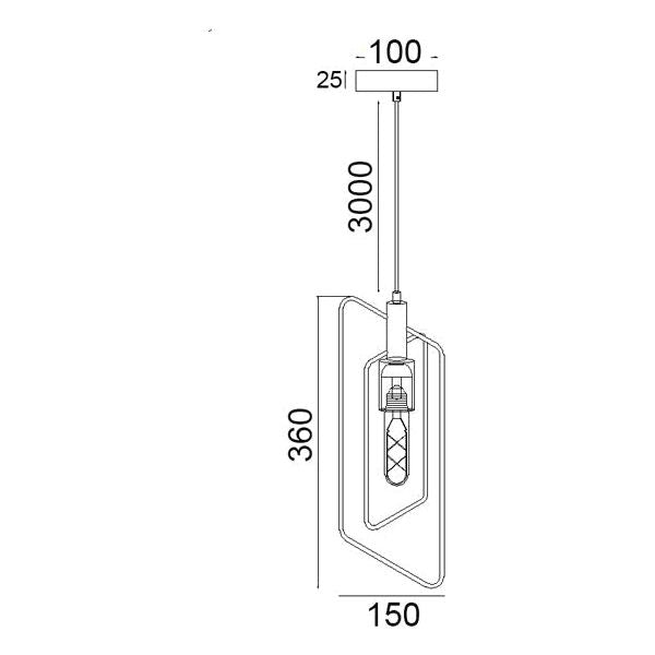 CONTOUR2 PENDANT ES 72W BLK Wire Rectangular with Antique Brass Highlight L360mm W150mm