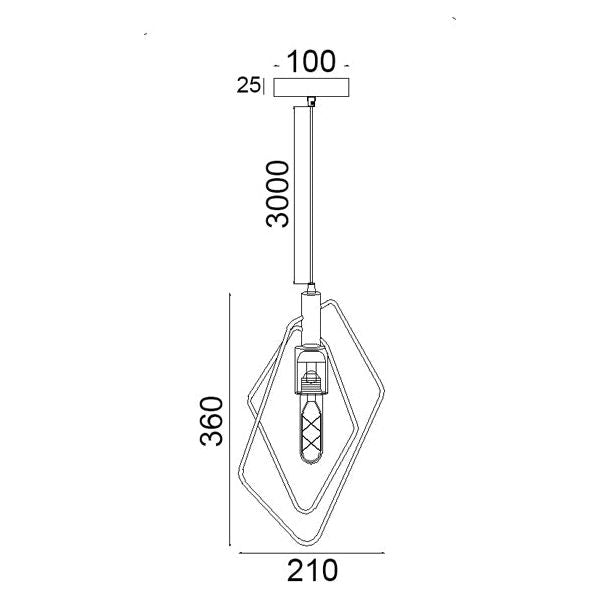 CONTOUR3 PENDANT ES 72W BLK Wire Diamond with Antique Brass Highlight L360mm W210mm