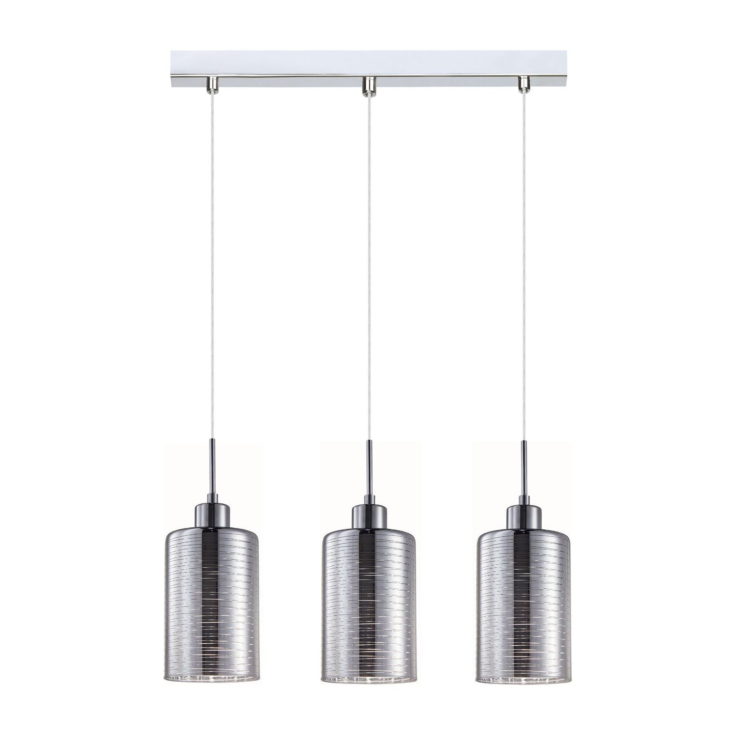 CLA ESPEJO1 Interior Iron & Chrome Glass with Line Effect Oblong Pendant Lights