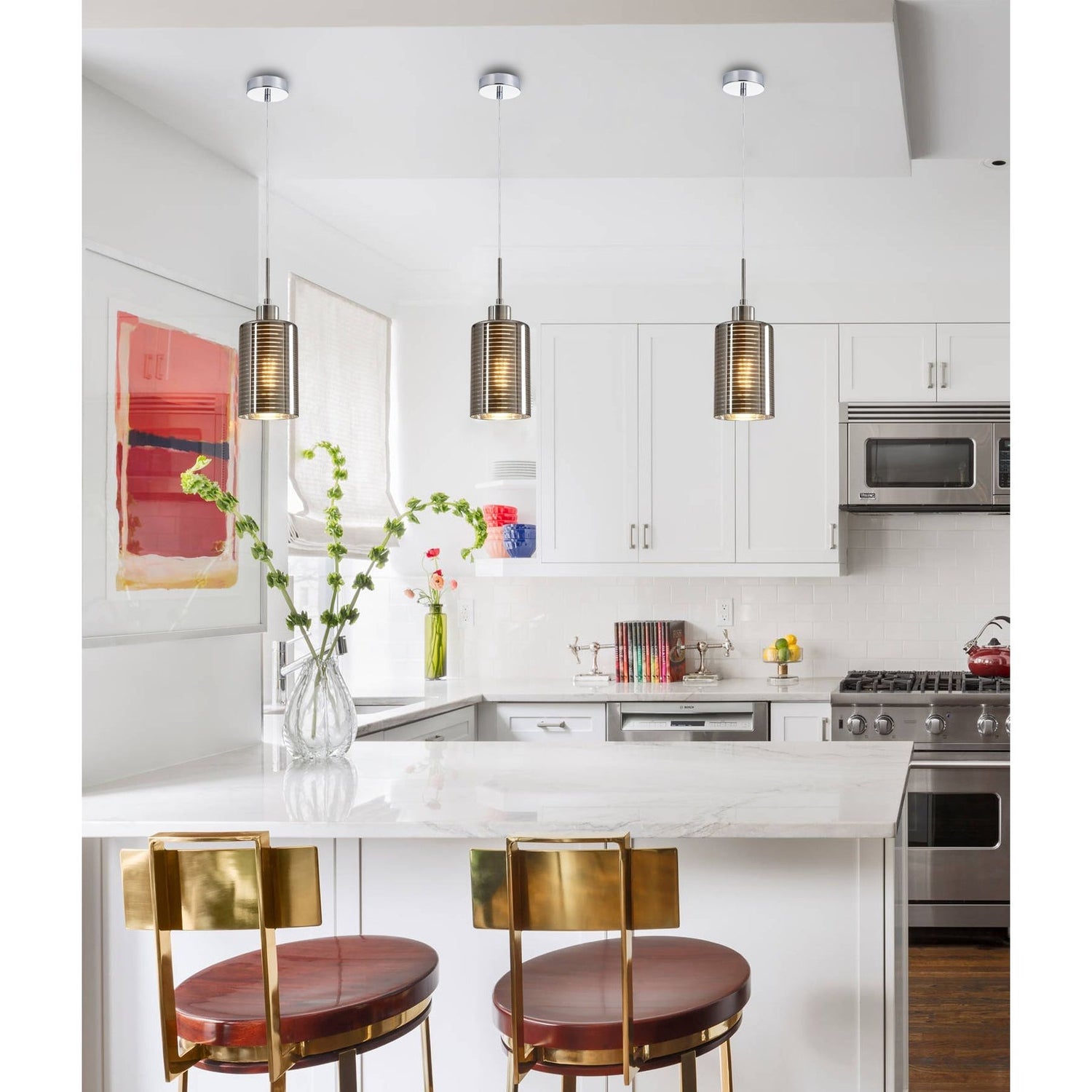 • Interior chrome glass with line effect pendant lights