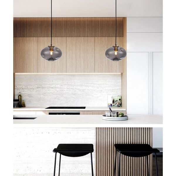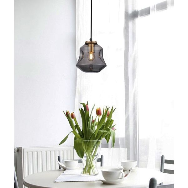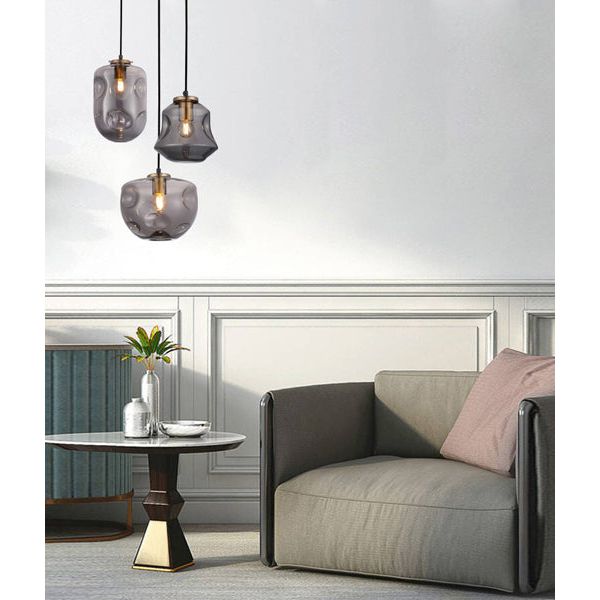 - Interior dimpled smoked/ mirror effect glass pendant light