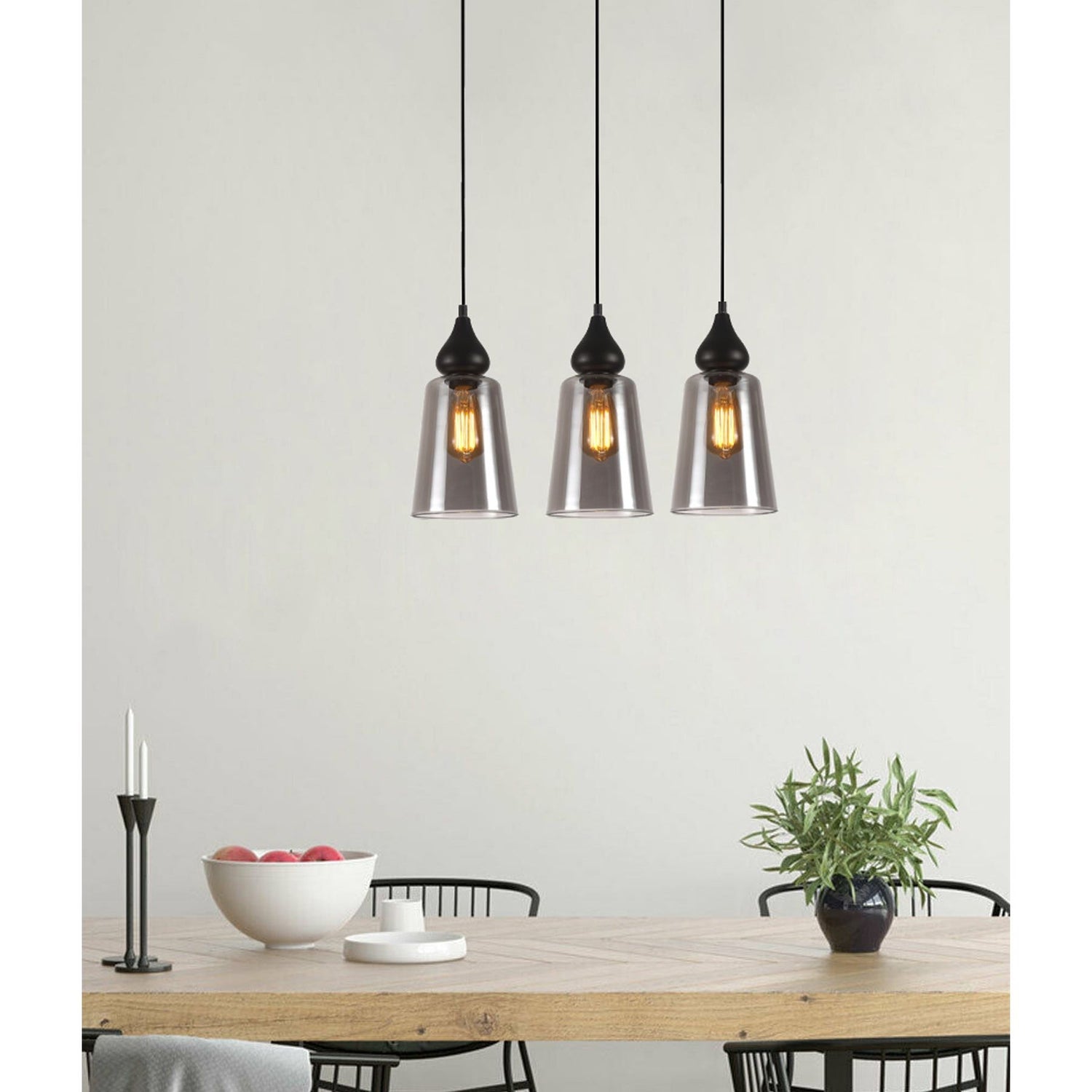 CLA JEREZ2 Interior Black Smoke Glass Flat Top Ellipse Pendant Lights