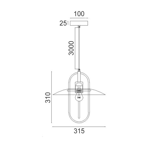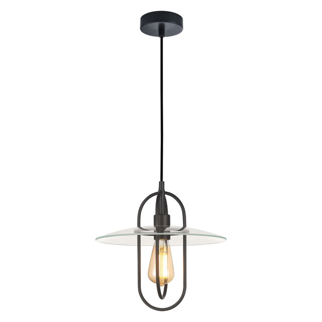 PAPILLON1 PENDANT ES 72W Matt Black Oblong with Clear Glass Coolie L310mm W315mm