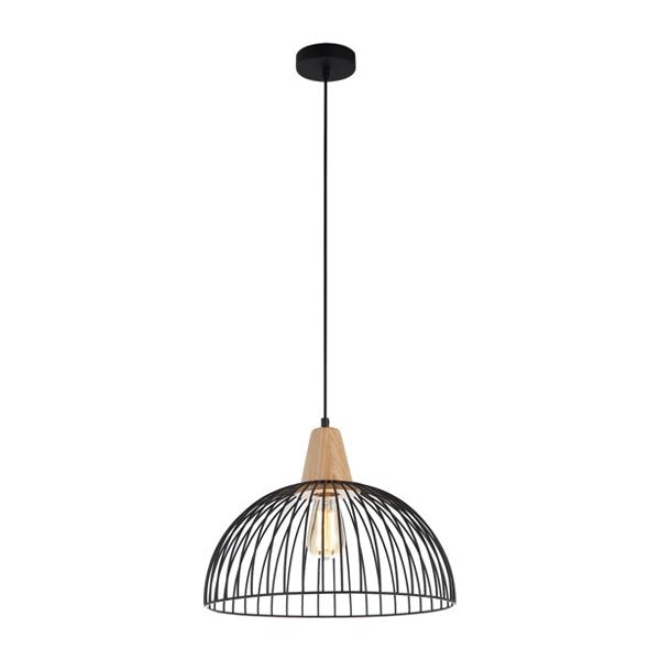 CLA Strand Iron and Wood Dome Cage Pendant lights
