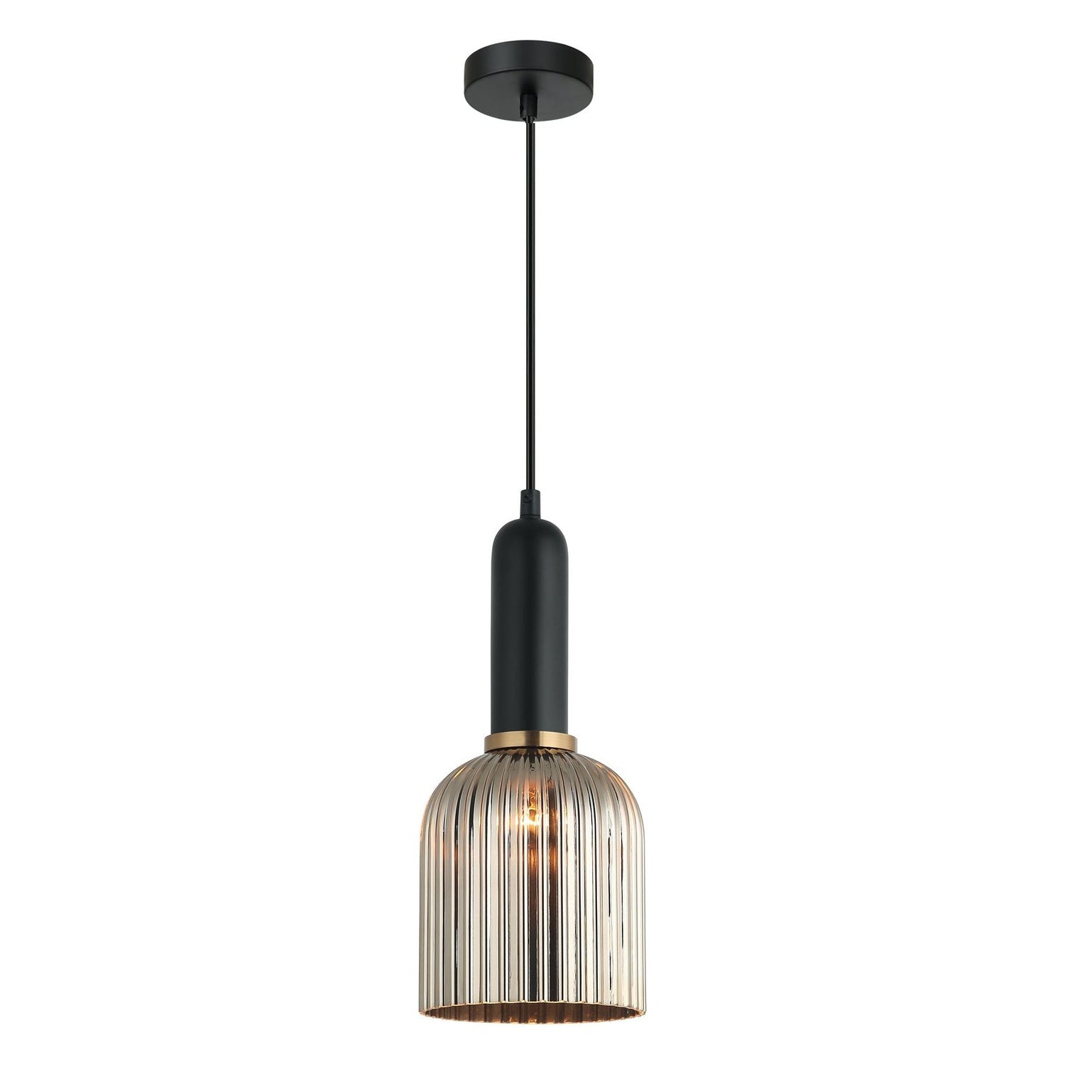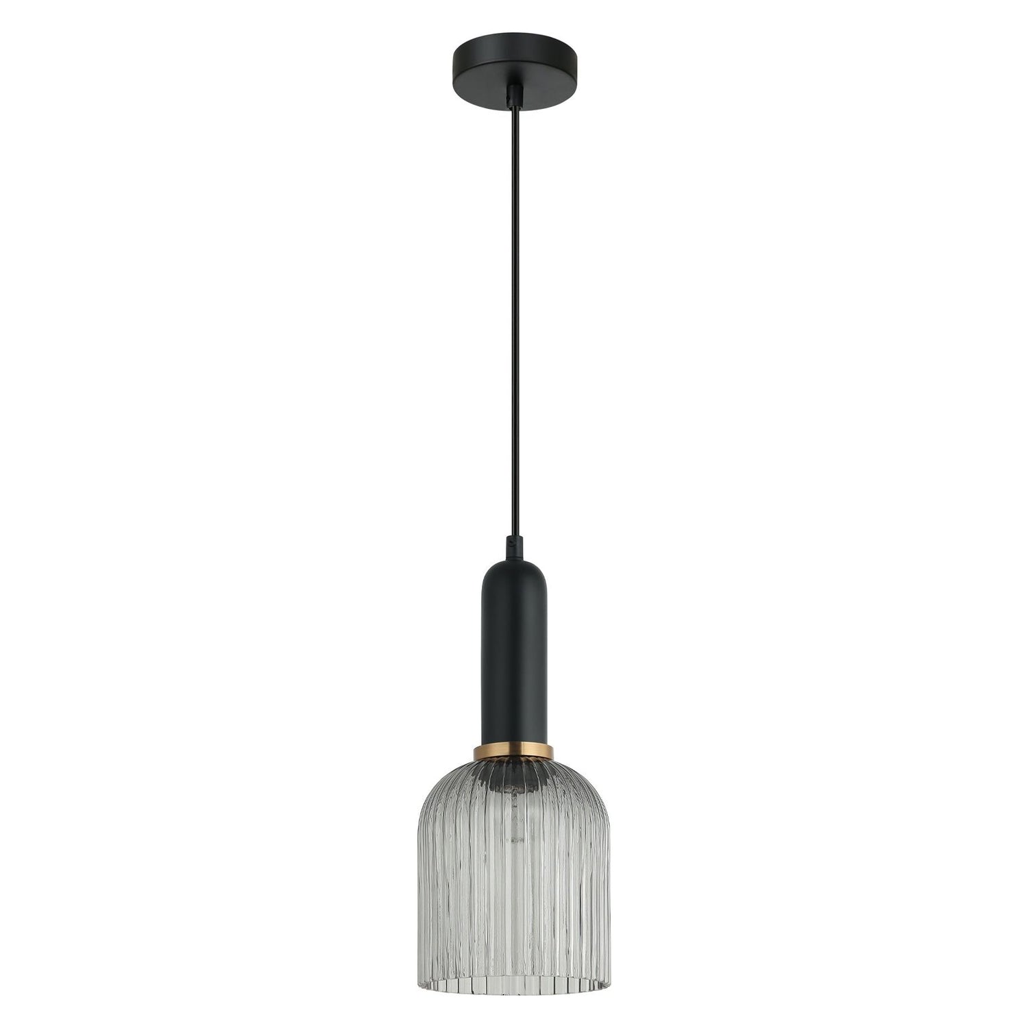 VINTAJ7 PENDANT ES OD140mm H310mm Ellipse Ribbed Smokey BLK Glass w/Brass