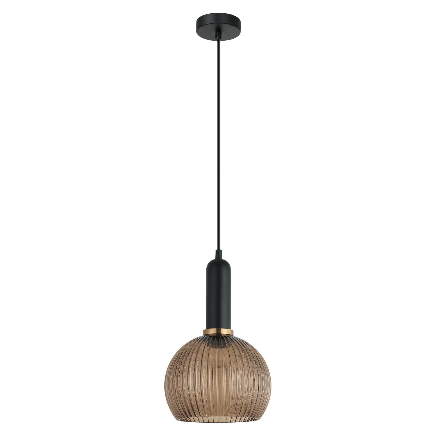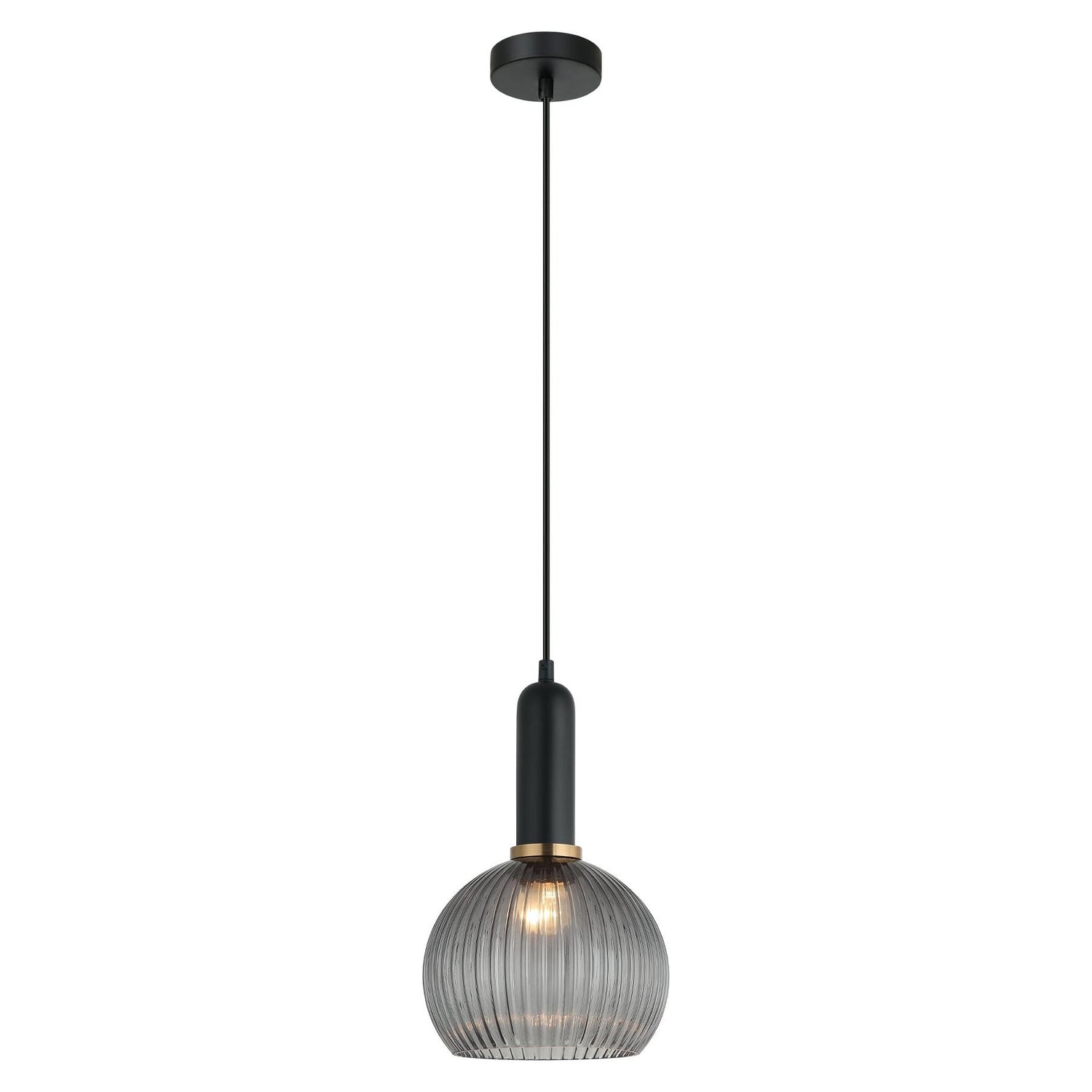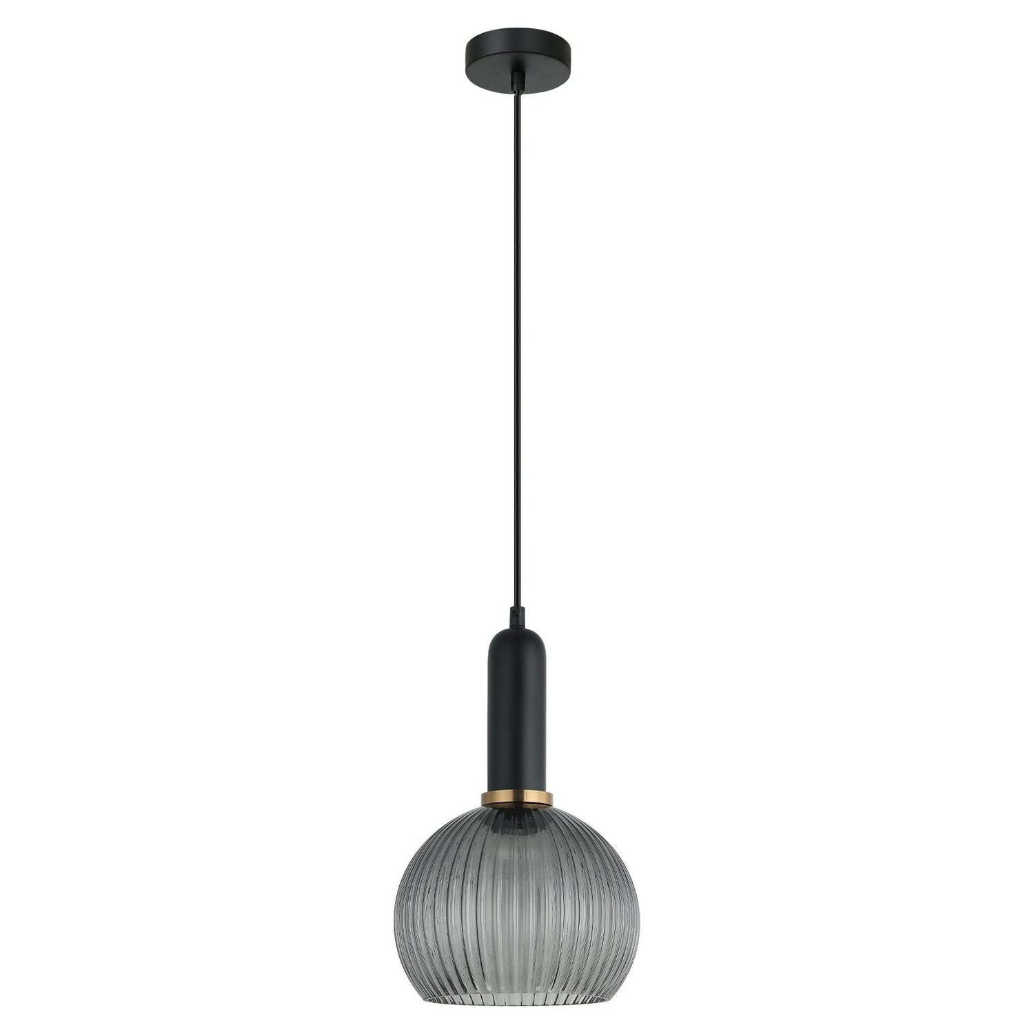 VINTAJ1 PENDANT ES OD200mm H305mm Wine Glass Ribbed Smokey BLK Glass w/Brass