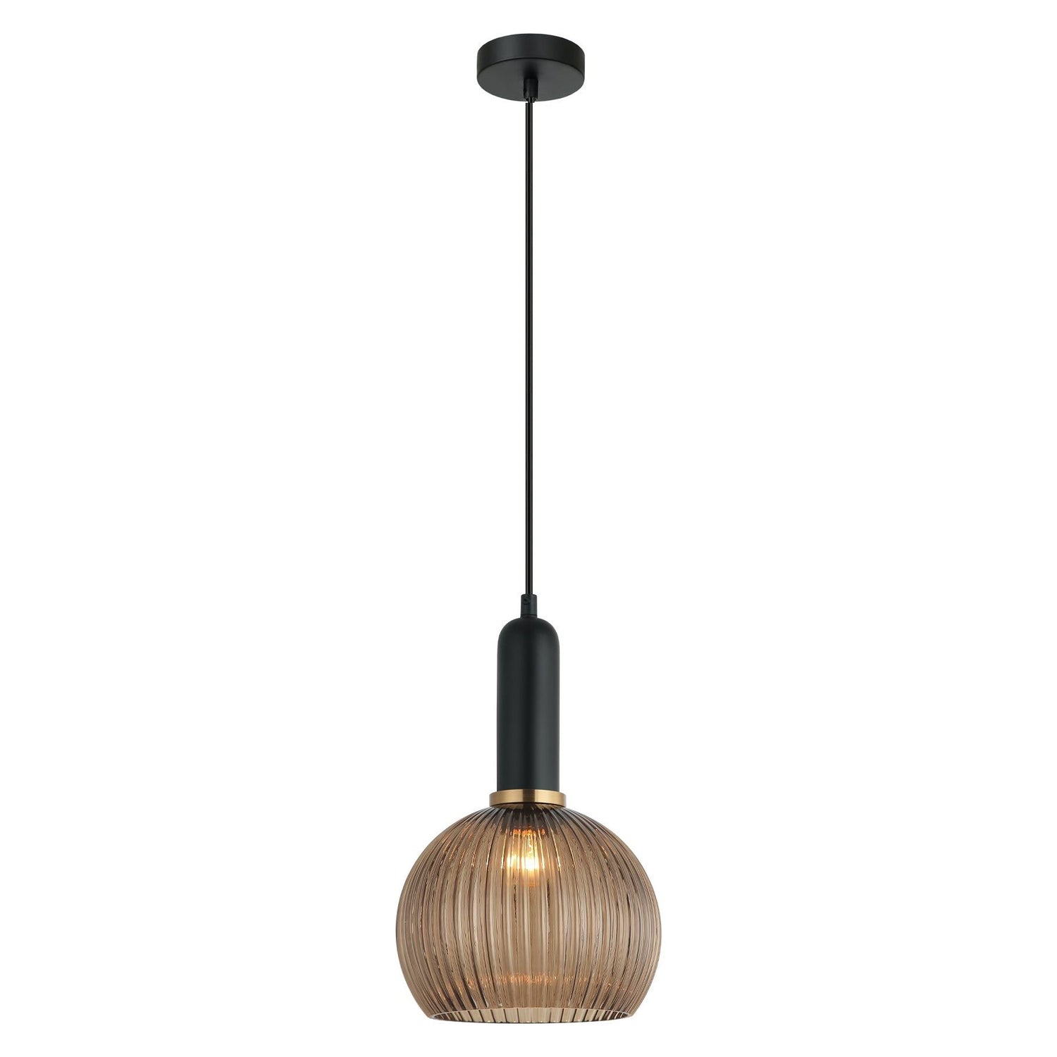 VINTAJ3 PENDANT ES OD200mm H305mm Wine Glass Ribbed Amber Glass w/Brass