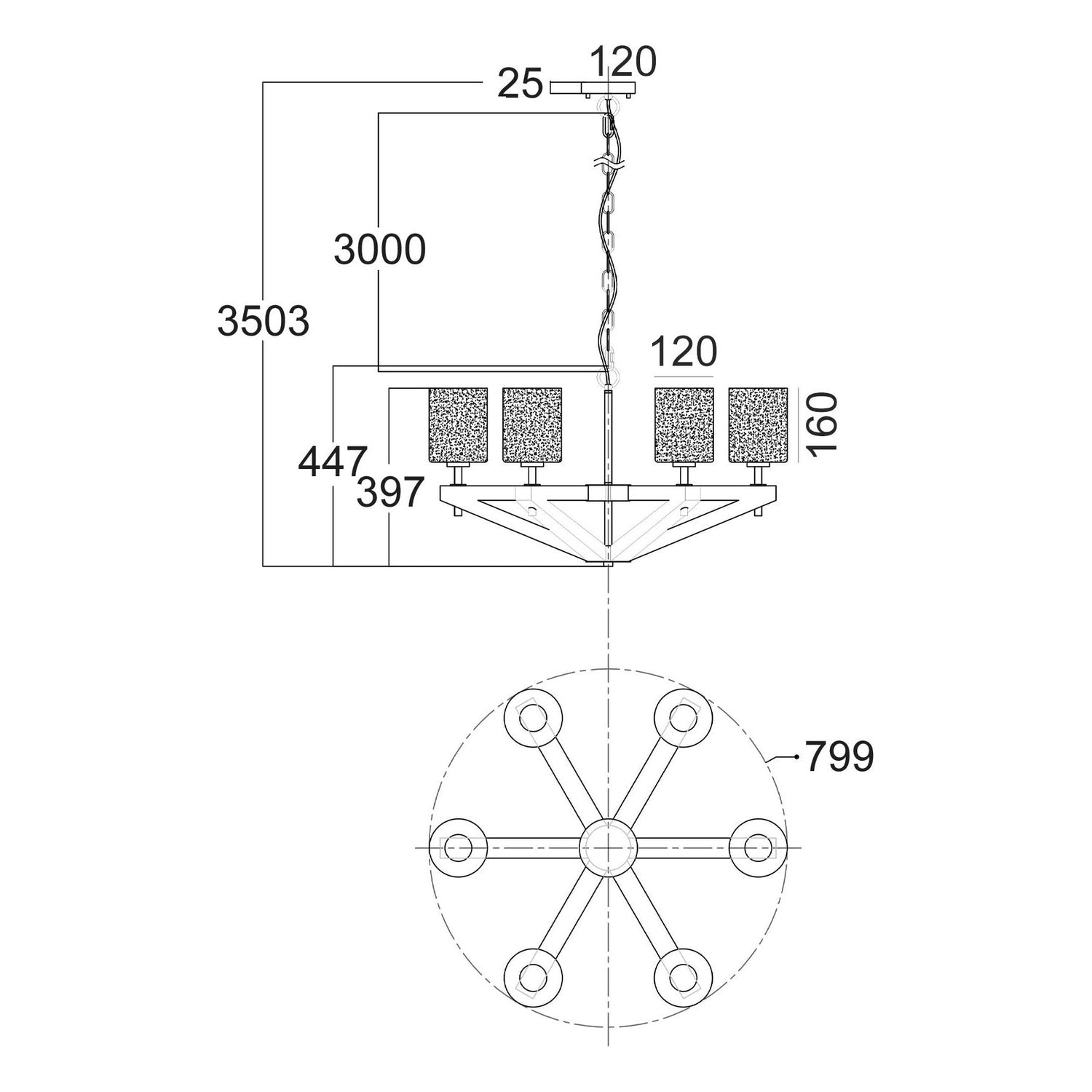 | VOTIF1 | PENDANT ES 6 x 60W Candelabra Oak Wood with Oil Rubbed Bronze Hardware & Clr Blown Dimpled Glass | Max.60 | - | 447 | Ø799 |