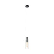 This pendant luminaire of the MONTEFINO series is made of black steel and clear glass. It pairs beautifully with an LED filament globe.