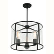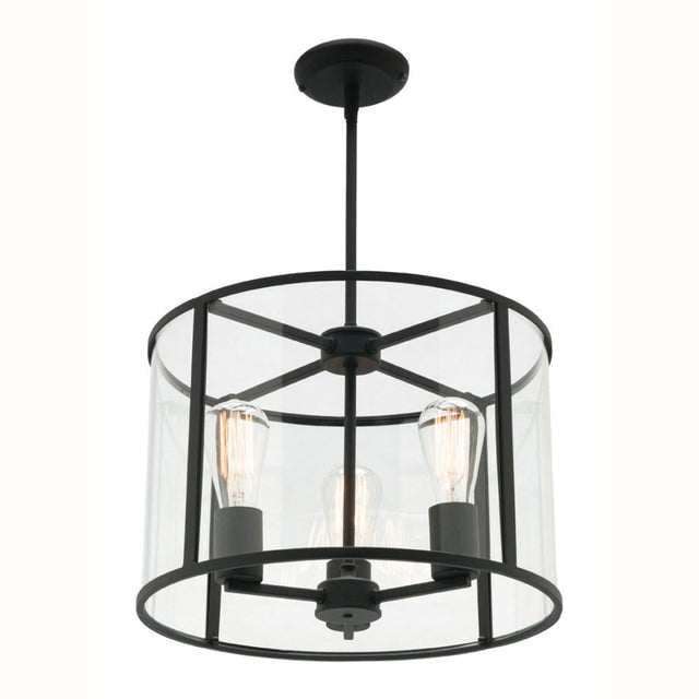 3Lt Round Pendant with Black metalware and Clear glass shade