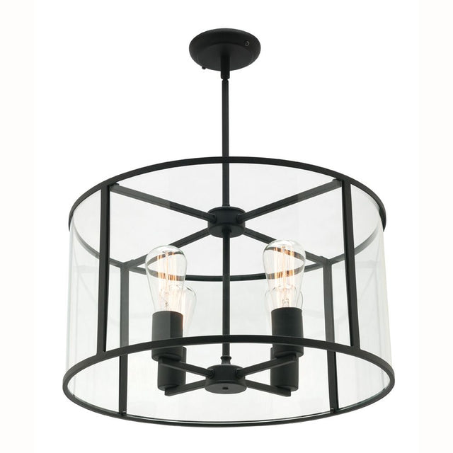 4Lt Round Pendant with Black metalware and Clear glass shade