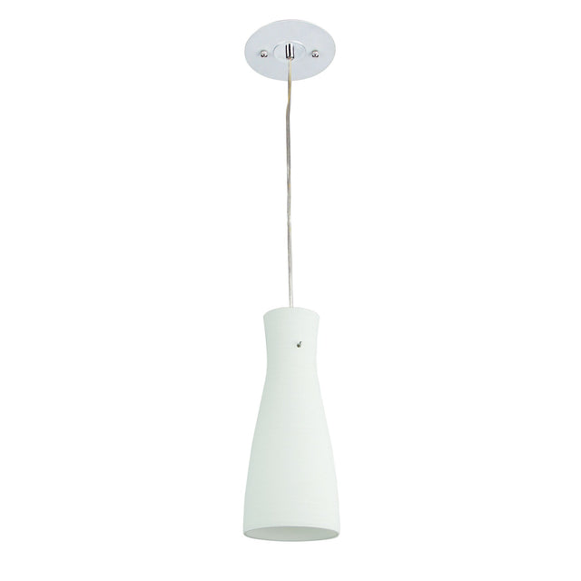 Beautiful glass pendant featuring a white hand-brushed finish, clear flex cord and white canopy. Perfect clustered above a bench or featured in a dining room. Ideal for use with an LED globe.