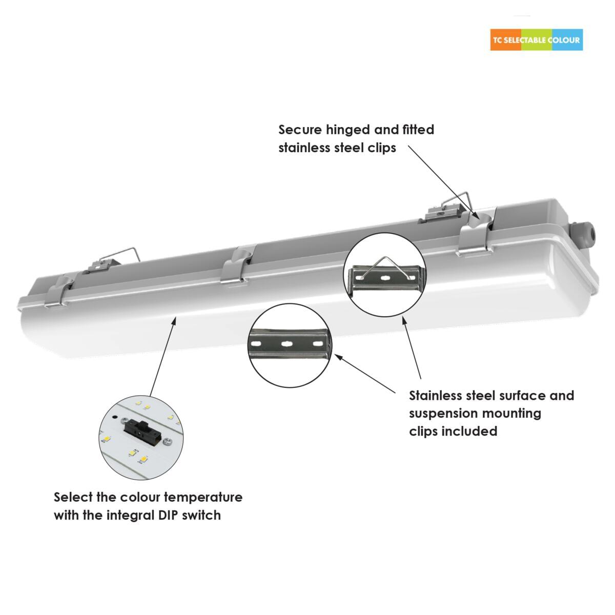 IP65 LED DUAL POWER weatherproof batten with selectable CCT and power with sensor options