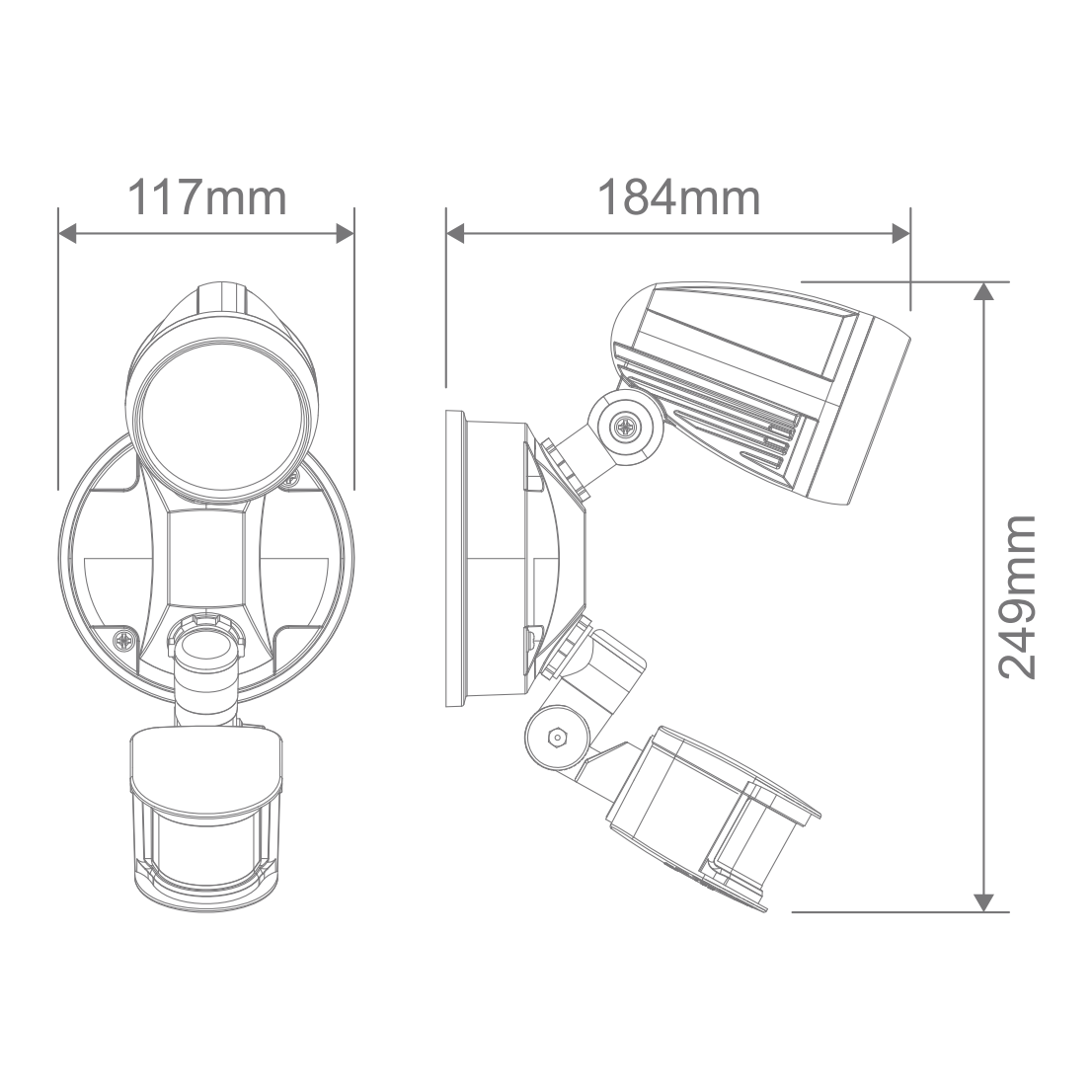 When installed under an eave it is critical that the sensor is not exposed to direct and continuous water and rain. The sensor is protected against water splashed from all directions (limited water protection permitted).Now with TRIO, the added option of changing the colour temperature output of the spotlight with a dip switch at the back of the fitting.