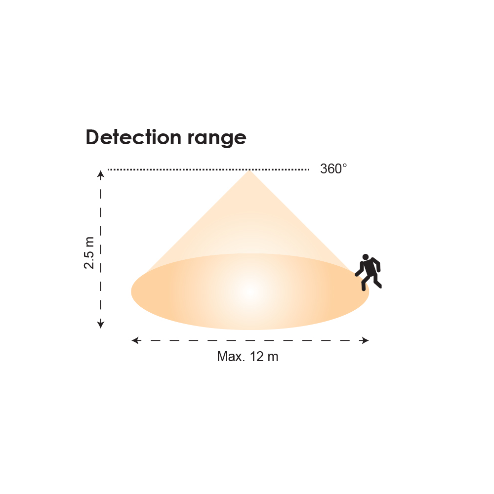 • Detection angle 360°, Duration Time 10sec/10min adjustable.