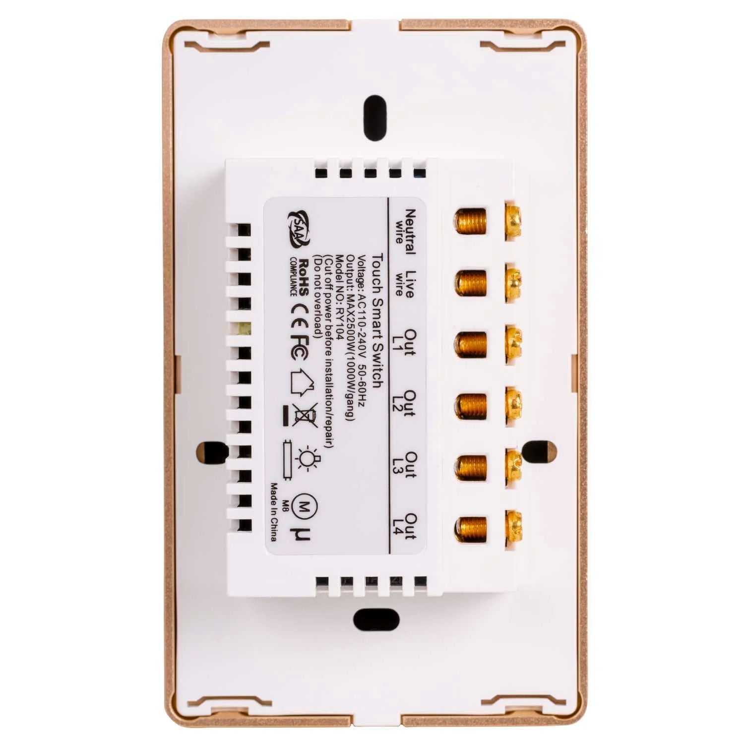 - 4 Gang White with Gold Trim Wifi Wall Switch