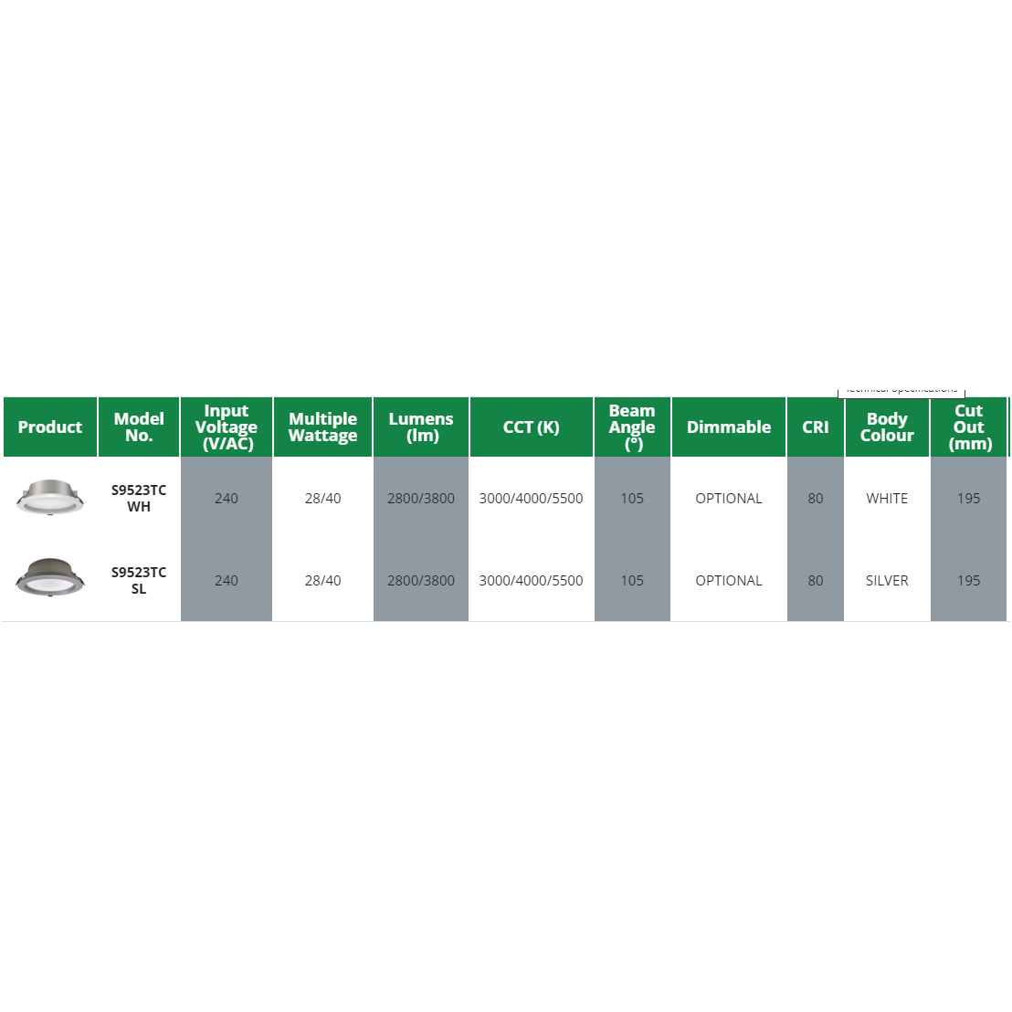 SAL Exmouth S9523TC 28/40W Recessed LED Shop Light