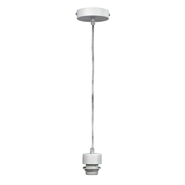 White metalware and clear cord suspension with an E27 lampholder. Shades and glasses sold separately, require a shade ring 43mm in diameter. Once installed (by an electrician), the shades can be easily changed as the décor or mood changes.