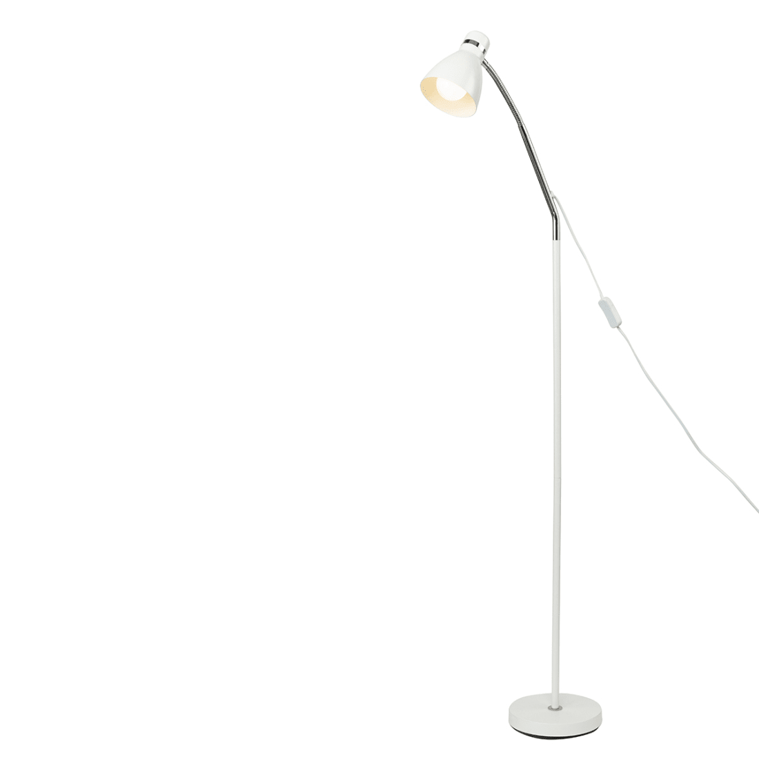The Sammy floor lamp is the classic staple for your office with it’s adjustable chrome neck, that allows it to be moved in many directions. Provides an ample spread of direct light, perfect for adding to your workspace or reading area. Easily direct the light using the adjustable chrome neck so you can angle it to the right position for your needs. Compact and lightweight design is ideal for small spaces and can be moved around with ease. Turns on and off using an in-line cord switch. Uses most E27 globes, 28W max (globe not included). Quick and easy Do-It-Yourself installation. Australian approved 1.8m cable and plug Ideal for reading, study or to increase light at your work station office or nook.
