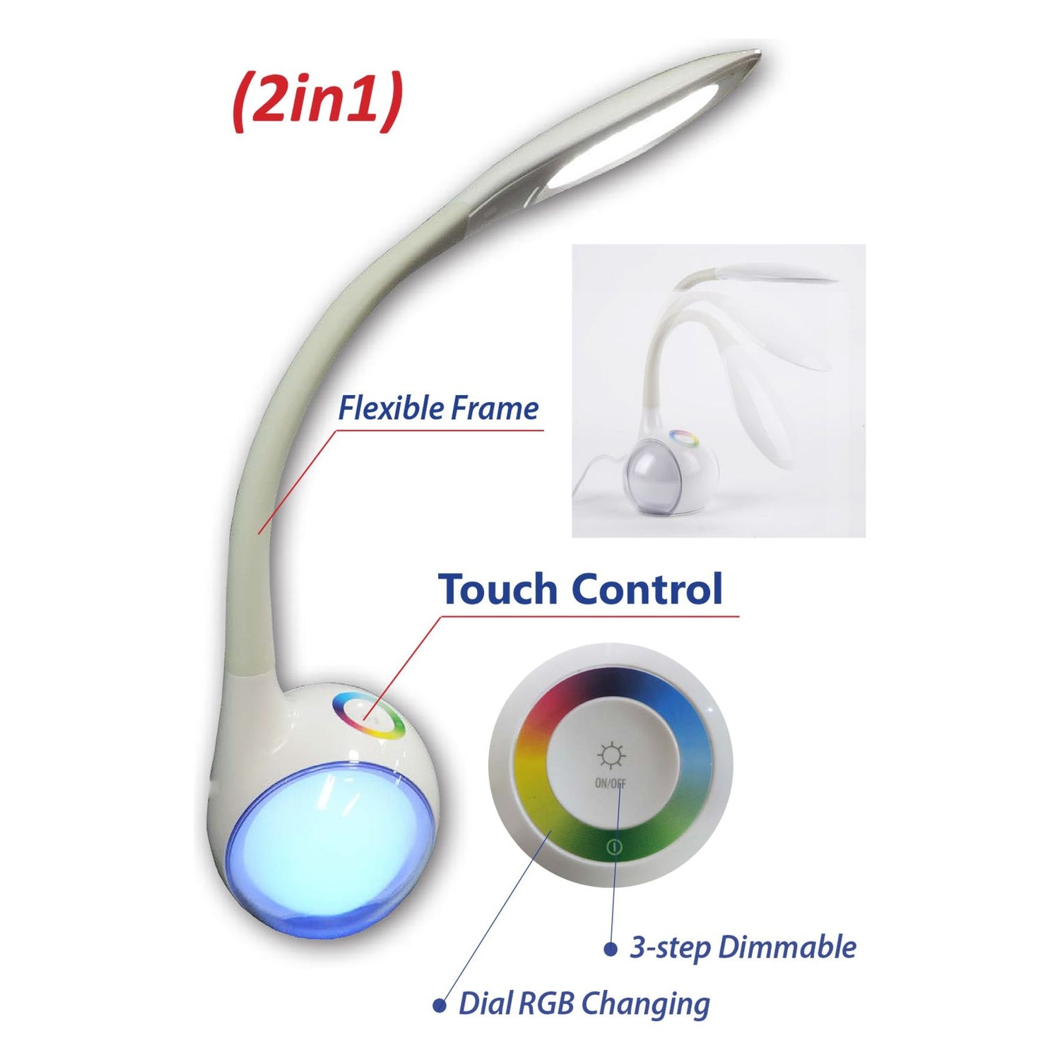MOOD TABLE LAMP / NIGHTLIGHT LED DIMM 6.5W WH 6500K 3 Dimming Modes + Dial Colour Changing Base