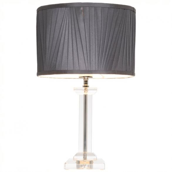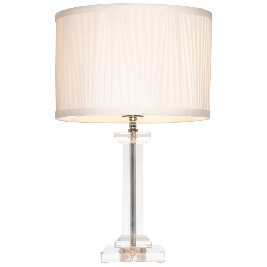 Crystal table lamp with pleated faux silk shade and clear crystal base.